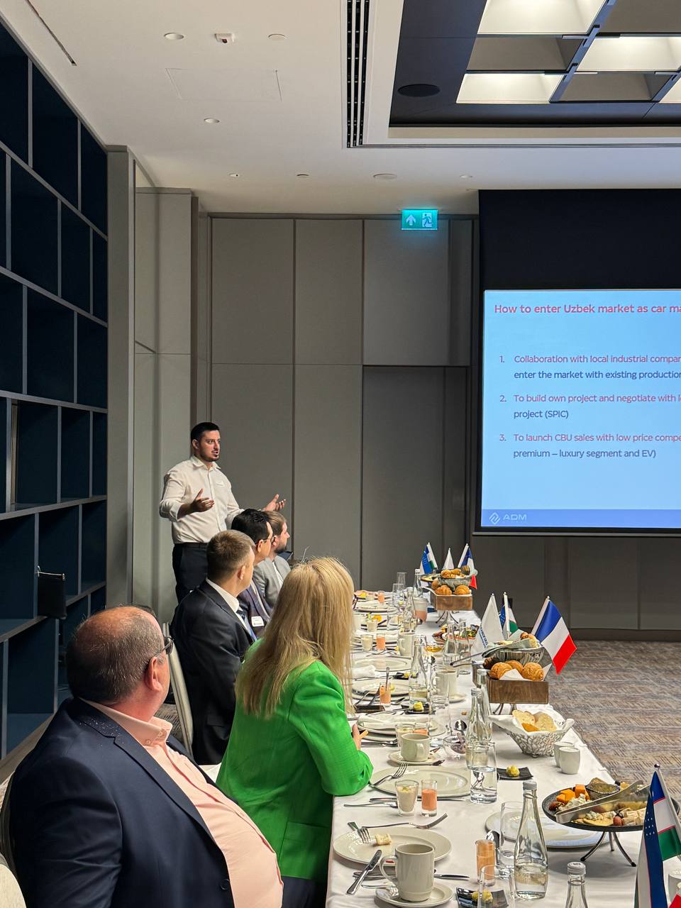 Le 19 Septembre, la CCIFO a organisé un petit déjeuner thématique sur l’industrie automobile. Cet événement a été l'occasion pour nos membres et invités de bénéficier d'une vue d'ensemble du secteur, en se concentrant sur sa place dans l'économie et l'écosystème ouzbek, ainsi que sur les tendances actuelles et futures. Nous avons eu la chance d'avoir des experts renommés dans le domaine de l'automobile, M. Danyar Davletyarov, PDG du groupe ADM, M. Pierre-Elie Doloy, responsable du développement de Roodell en Ouzbékistan, et M. Alexey Kurenkov, directeur de l'exploitation du groupe ADM, comme intervenants lors de notre petit-déjeuner.