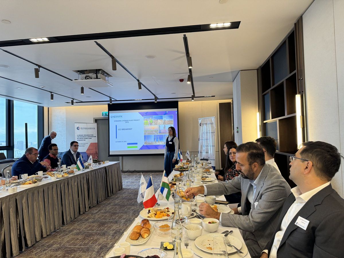 Le 29 octobre, la CCI France Ouzbékistan a organisé un petit-déjeuner d'affaires consacré aux infrastructures énergétiques en Ouzbékistan. Ce fut l'occasion d'entendre des experts d'UzEnergoSotish et d’UzAssystem ainsi que les directeurs d’Enersok et de Veolia, qui ont partagé leur expérience et leurs projets en Ouzbékistan. Plus de 30 participants se sont réunis pour l'événement, qui a donné lieu à de nombreuses opportunités de réseautage et de discussions.